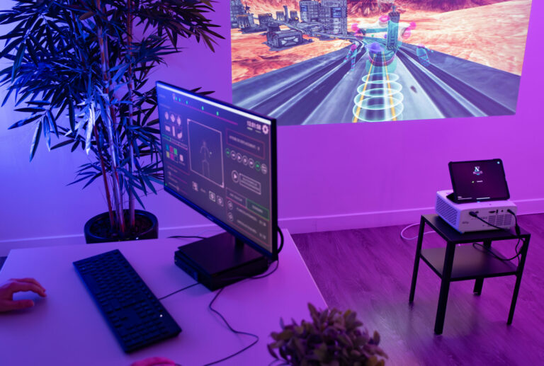 MoveR Go nécessite un dispositif d’affichage dans votre cabinet. Si un vidéo-projecteur est préconisé, MoveR Go est également compatible avec un écran de télévision. Si votre cabinet est déjà équipé d’un vidéo-projecteur, veuillez bien respecter les contraintes suivantes: